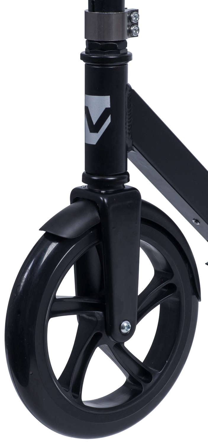 Novatrack Polis 230 PRO - алюминиевый самокат, оборудованный удобным механизмом складывания с помощью одной кнопки и износостойкими полиуретановыми колесами. Широкая асимметричная платформа с концепцией одностороннего крепления заднего колеса и противоскользящим покрытием позволит удобно и безопасно разместиться как ребенку, так и взрослому весом до 100 кг. Регулируемый по высоте эргономичный Y-образный руль обеспечит комфортный хват. Благодаря большому переднему колесу модель запросто преодолеет плитку или брусчатку, которой застелены центральные улицы или парковые дорожки.