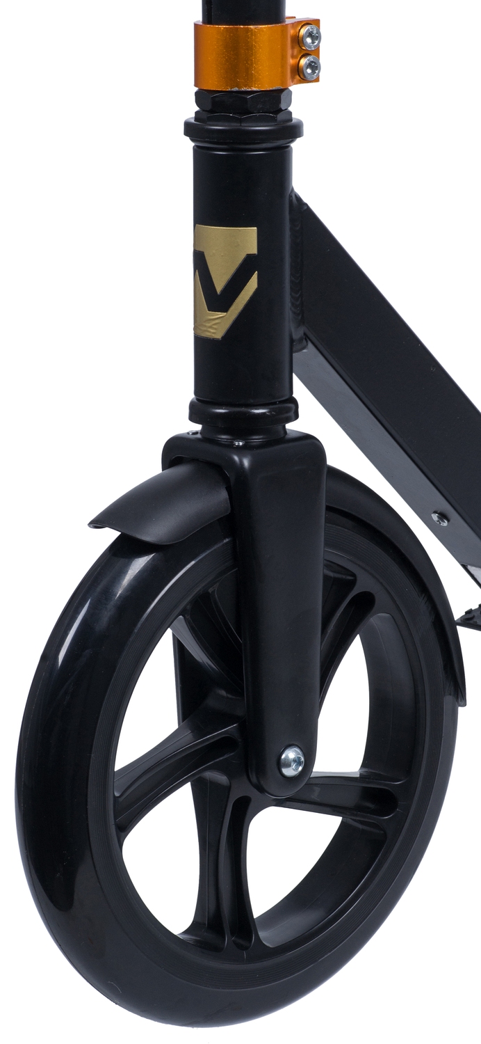 Novatrack Polis 230 PRO - алюминиевый самокат, оборудованный удобным механизмом складывания с помощью одной кнопки и износостойкими полиуретановыми колесами. Широкая асимметричная платформа с концепцией одностороннего крепления заднего колеса и противоскользящим покрытием позволит удобно и безопасно разместиться как ребенку, так и взрослому весом до 100 кг. Регулируемый по высоте эргономичный Y-образный руль обеспечит комфортный хват. Благодаря большому переднему колесу модель запросто преодолеет плитку или брусчатку, которой застелены центральные улицы или парковые дорожки.