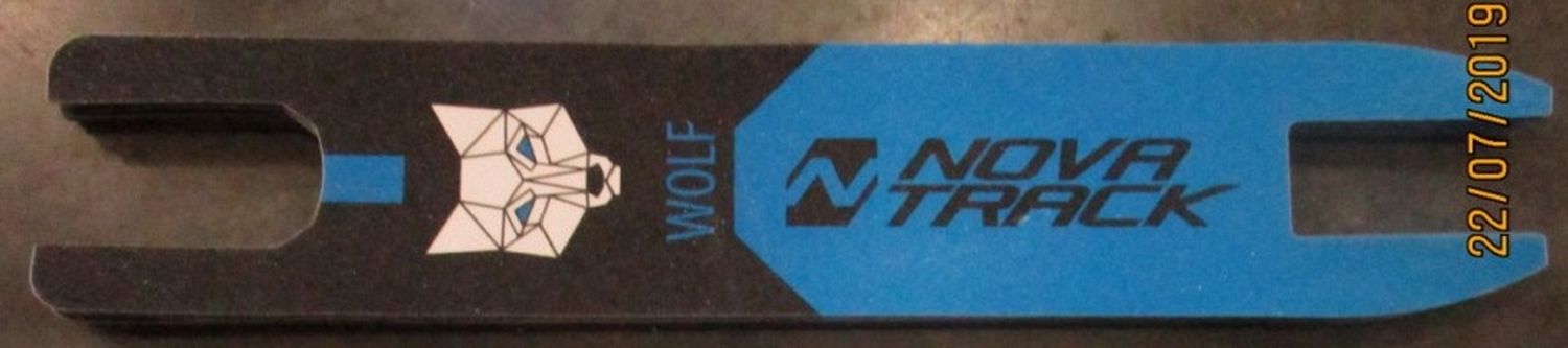 Шкурка-накладка на деку трюкового самоката Novatrack Wolf 100 Alloy EL, 47,5см9см, синяя