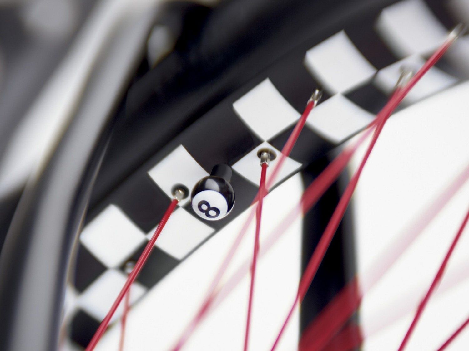 Внешний вид Straight 8 также не оставит никого равнодушным. Роскошный черный матовый цвет придает ему элегантность и стиль, а красные спицы и шахматная клетка на ободе заднего колеса добавляют нотку дерзости. Кастомные колпачки в виде бильярдного шара 8, талисмана знаменитых американских хот-родов, делают этот велосипед поистине культовым.