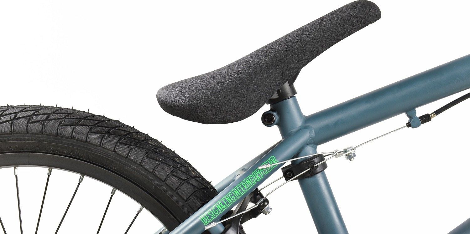Рама из стали Hi-Ten 13A и жесткая вилка Grinz BMX обеспечивают прочность. Кассета DNP LY-14T8QJ с трещоткой и однокомпонентные шатуны CW CW-J (30T) упрощают управление. Колеса с ободами Qijian MX-25 и покрышками Wanda (Compass) P-1042 шириной 2,30 дюйма гарантируют хорошее сцепление. Ободные клещевые тормоза Sparkle U-969D обеспечивают надежное торможение.