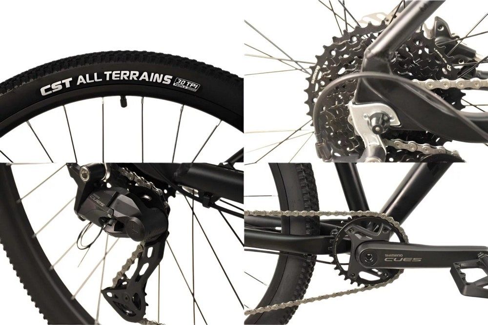 Рама и вилка изготовлены из алюминия, что делает велосипед лёгким и прочным. Внутренняя проводка, демпфер рубашки для шумоизоляции и полированные швы придают раме элегантный и современный вид, а воздушная вилка GTMRK 367 AIR/HLO/REB с ходом 100-120 мм создаёт дополнительный комфорт и контроль на любых трассах. Велосипед имеет высококачественную 10-скоростную трансмиссию Shimano Cues, что позволяет легко адаптироваться к различным условиям и преодолевать любые препятствия.