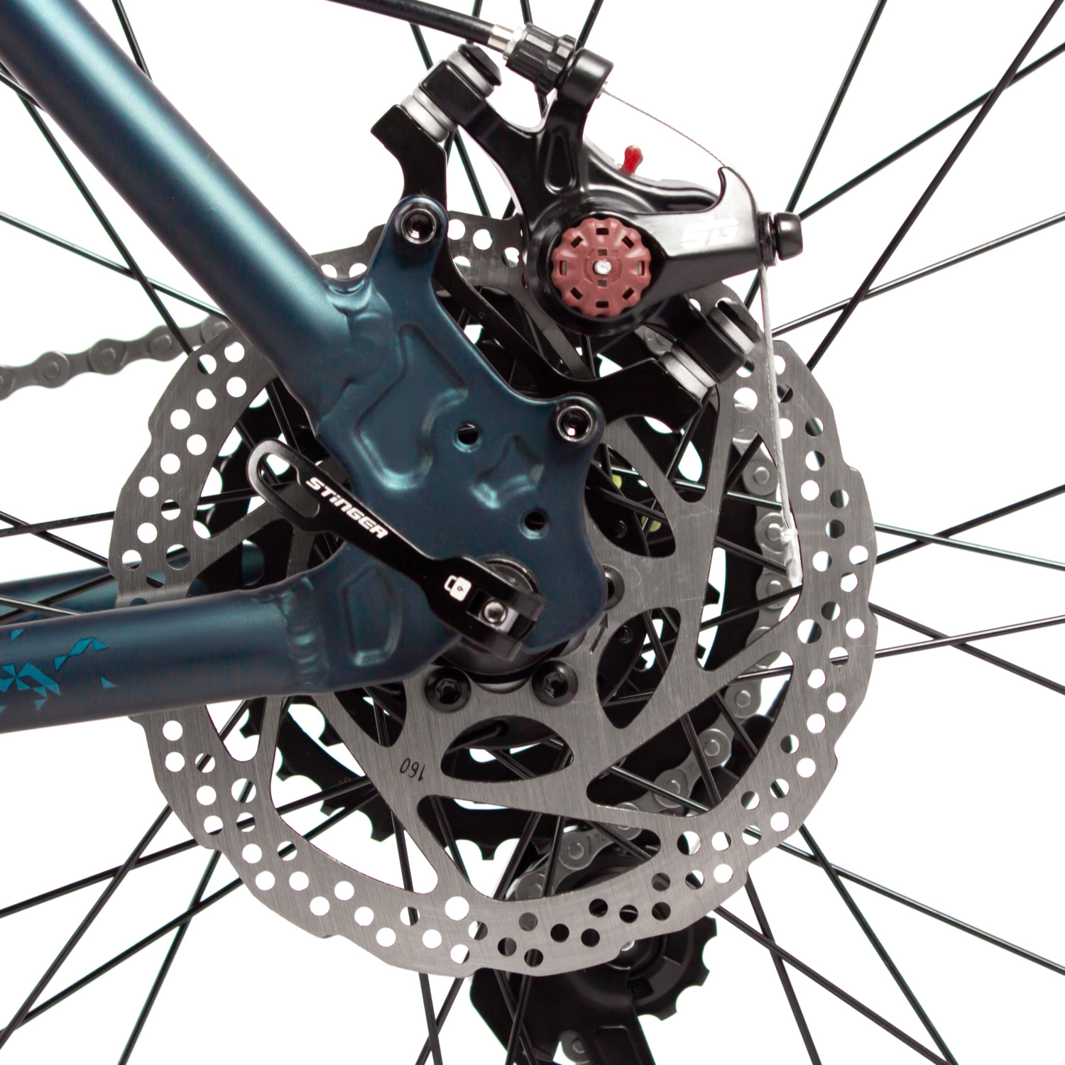 – Пружинная вилка STG Spice с ходом 110 мм для хорошей амортизации.
