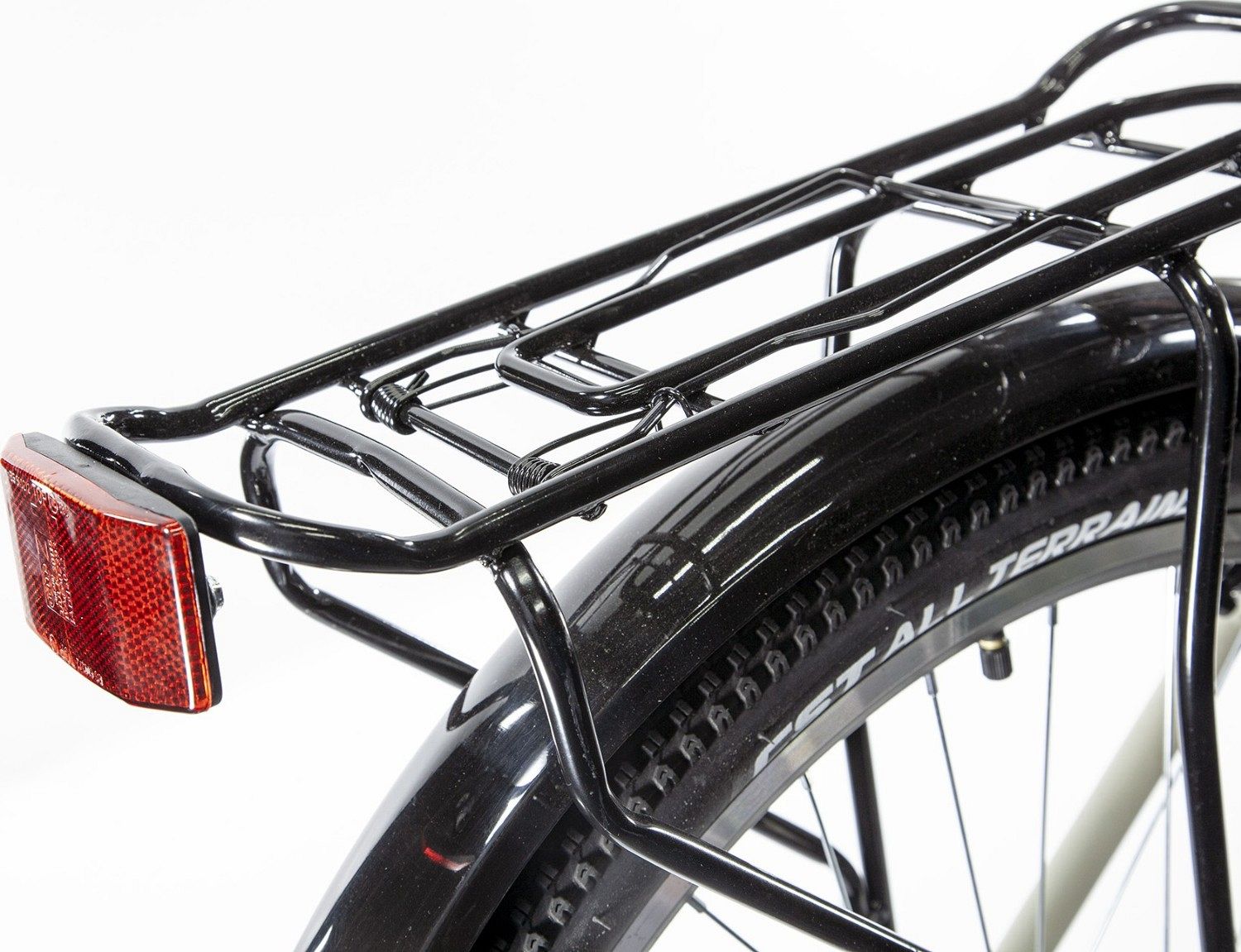 Переключение передач осуществляется с помощью 7-скоростной трансмиссии от Microshift, а торможение надежно обеспечивают легкие ободные тормоза V-Brake от Promax. Велосипед собран на 26-дюймовых колесах с двойными алюминиевыми ободами, что обеспечивает прочность и надежность. Велосипед оборудован универсальными покрышками CST All Terrains, которые отвечают за хороший накат и уверенный зацеп на различных поверхностях. Полноразмерные пластиковые крылья защитят вас от грязи, а защита цепи позволит кататься в любой одежде без опасений повредить ее. Багажник с надежным зажимом позволяет удобно перевозить различные грузы. Для удобства парковки предусмотрена алюминиевая подножка.