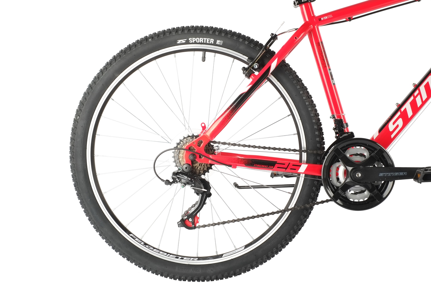 Производитель использует в байках STINGER CAIMAN только высококачественные оригинальные комплектующие, гарантирует длительный рабочий ресурс и полную безотказность велотехники. Усиленная рама из стали, созданная по технологии Hi-Tensile, обеспечивает высокий уровень надежности, а универсальная амортизационная вилка модели Stinger имеет ход на 60 мм и обеспечивает максимальный уровень комфорта при езде по бездорожью. Специальный протектор на покрышках Z-Axis гарантирует плотное сцепление колес с дорожным покрытием, что обещает велосипедисту идеальные показатели по управляемости и точности хода байка.