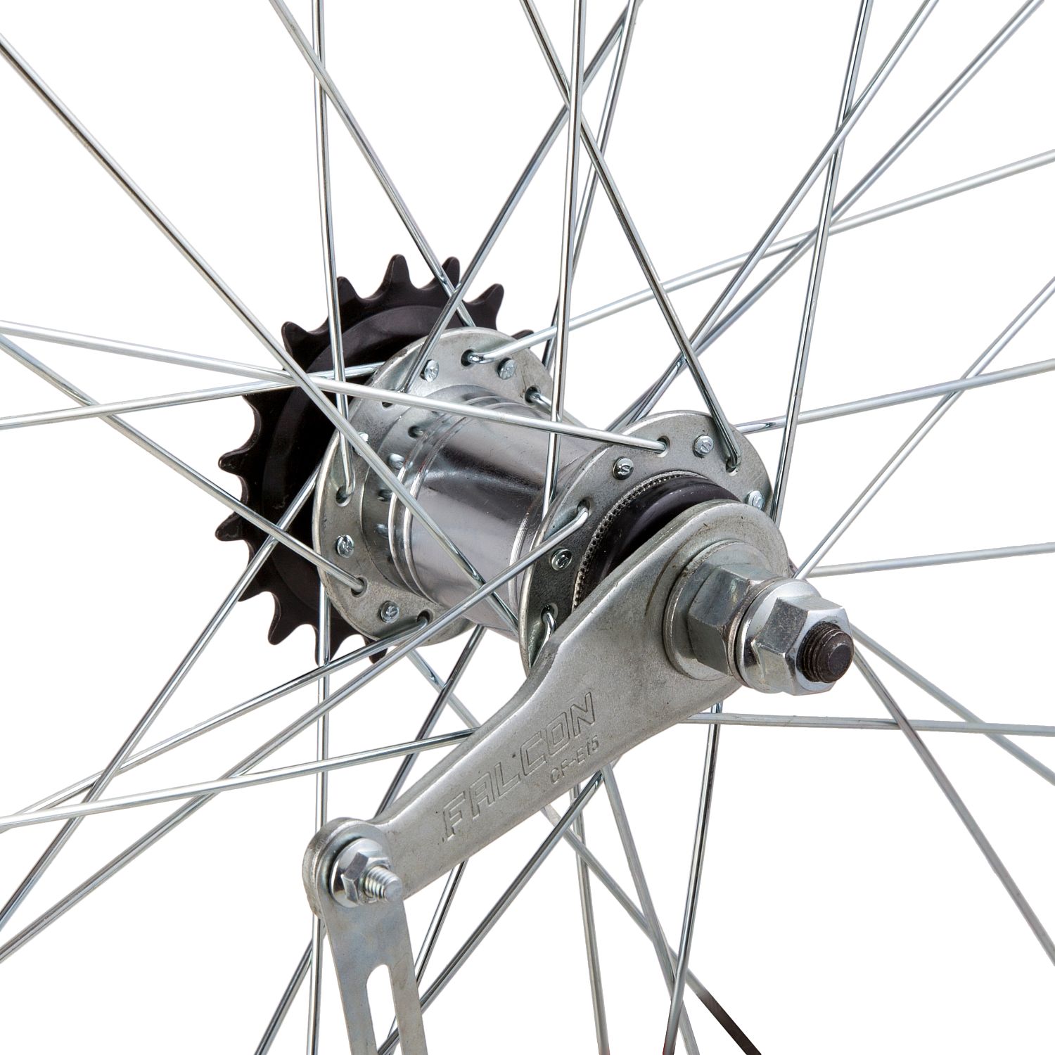 Колесо 28 заднеебез резины, одностенный алюминиевый обод под 32 спицы. Втулка FALCON, звезда 18 Т.