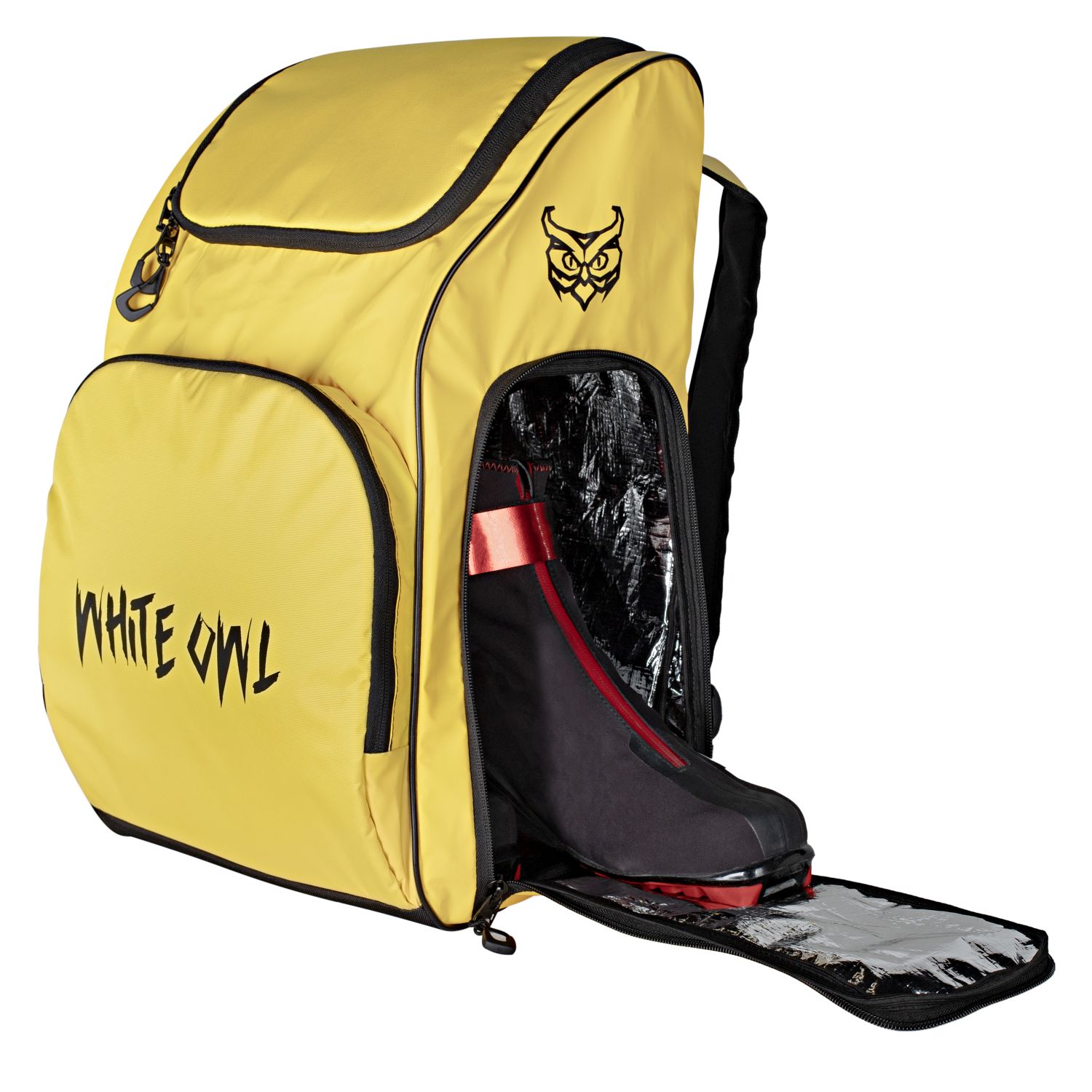 Сумка-рюкзак White Owl предназначена для переноски горнолыжных/сноубордических ботинок и другого спортивного инвентаря. Она вмещает одну пару ботинок и дополнительное снаряжение, такое как шлем. Сумка выполнена из прочного влагостойкого материала и обладает повышенной защитой от износа. В ней также есть вместительные дополнительные карманы. Мягкие лямки обеспечивают комфортную посадку на плечах, что позволяет легко перемещаться с экипировкой. Рюкзак также оснащен небольшой ручкой сверху для удобной переноски в руке. Размер сумки-рюкзака составляет 50х35х23 см, а цвет - желтый.